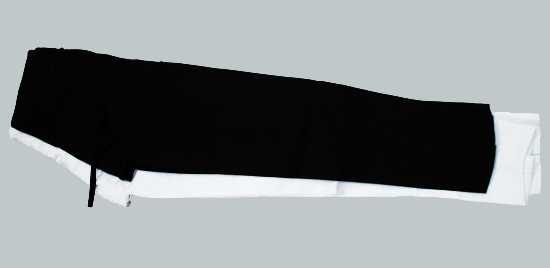 素材ポリウレタン5%綿95%今では定番のストレッチ素材で、伸縮が自由自在です。(上の写真は、白が股太長寸、黒が標準です。)