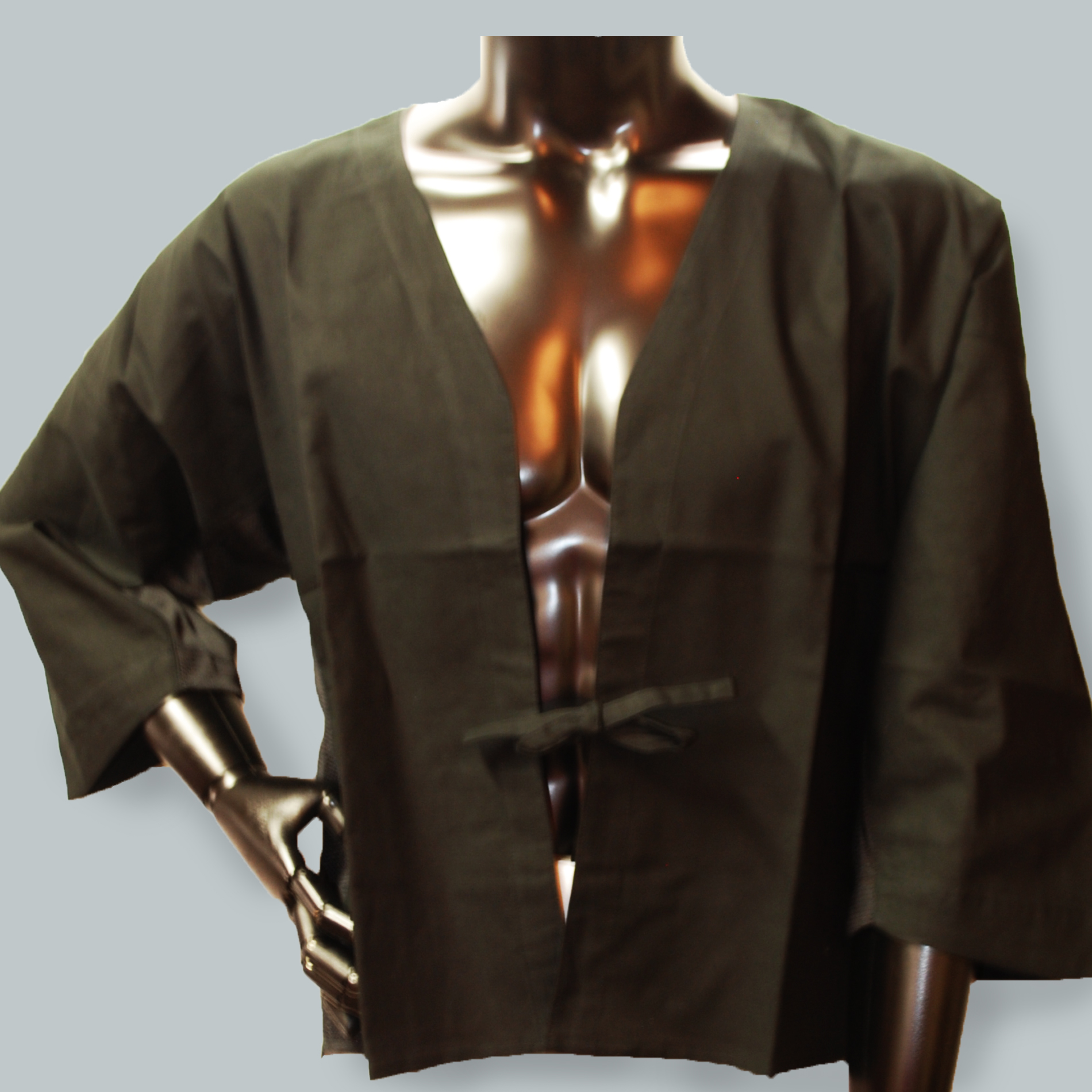 「糸よし」のひも式鯉口シャツ。