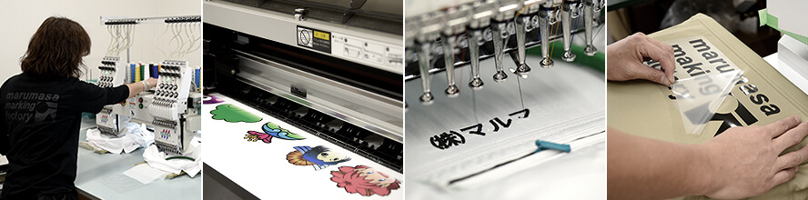 作業服・ポロシャツ・Tシャツはもちろん、ジャンバー・CAP・タオル・イベントハッピ等に出来ます。商品・数・デザイン・予算に合わせて、プリント手法の提案を致します。